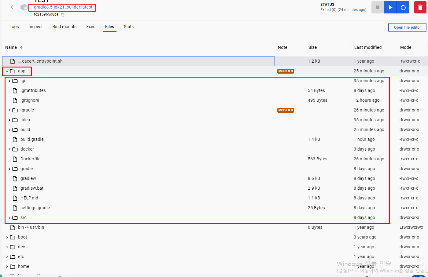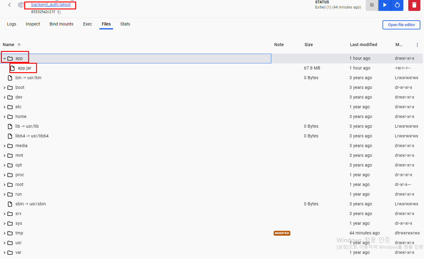 아래는 빌드스테이지 단계만 거친 이미지의 컨테이너이다 .