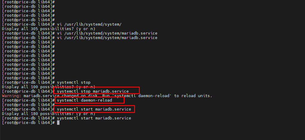 3. systemd로 maraidb 를 관리하고있기떄문에 systemd 경로로 접근하여 mariadb 시스템 서비스 파일을 수정하였다.