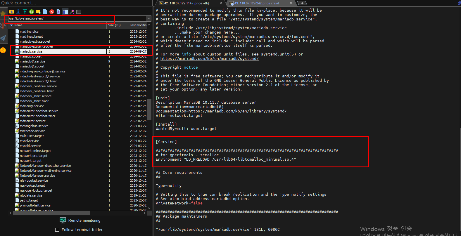 밑으로는 TC Malloc 을 을 mariadb 에설정하는 과정이다.