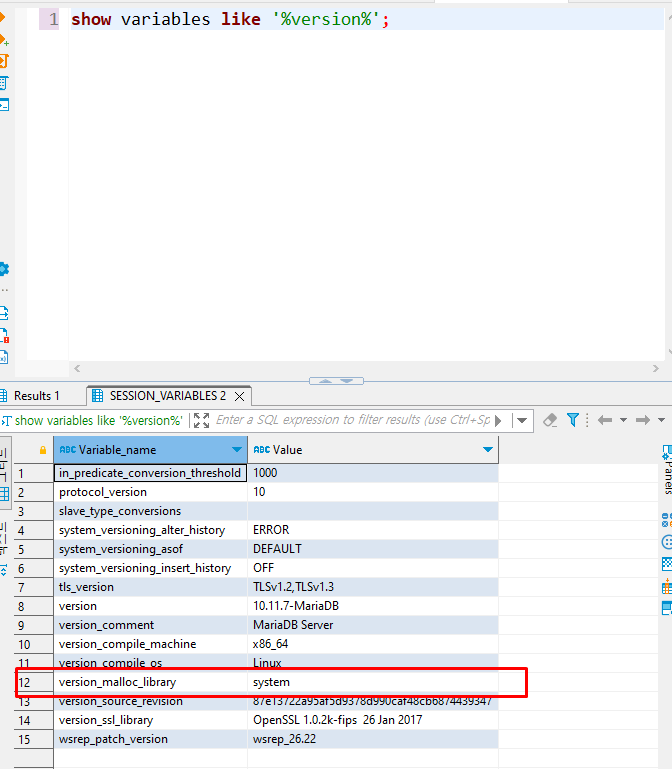 SHOW GLOBAL VARIABLES LIKE 'version_malloc_library';