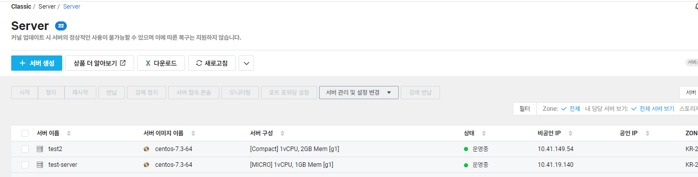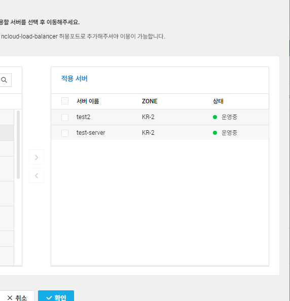 7-2 클라우드 서비스 중 연결된 test2 서버의 헬스체크 상태가 성공 ->실패 로 변경