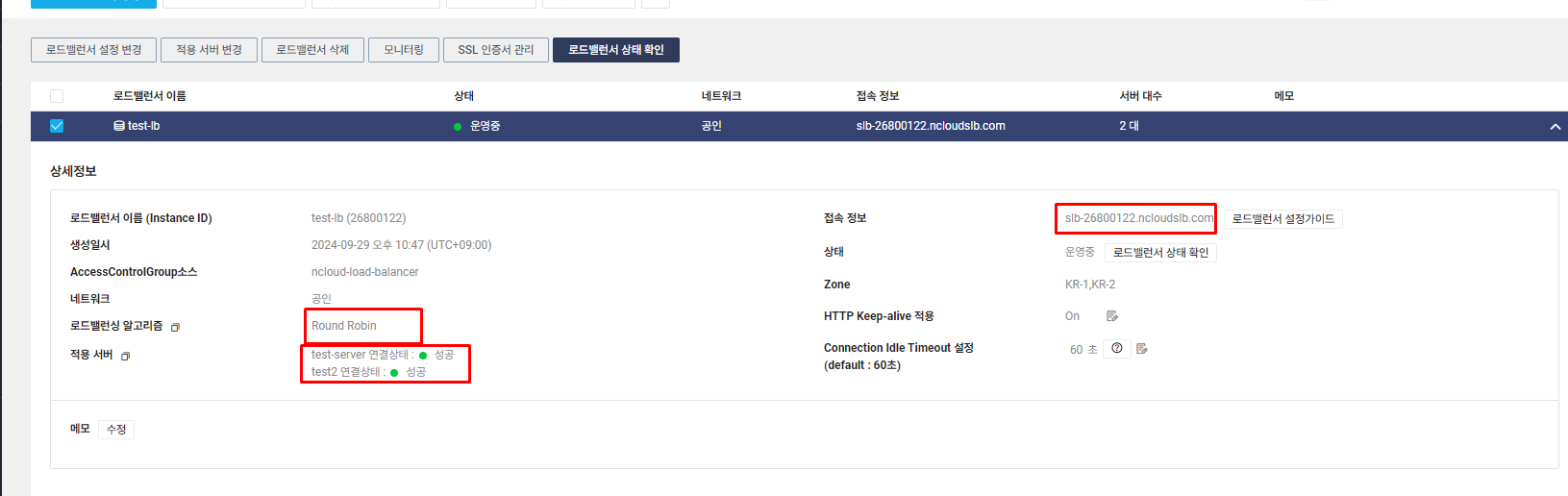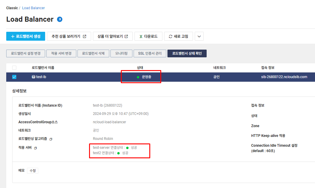 5. 로드밸런서 적용 서버의 연결상태가 성공임을 확인